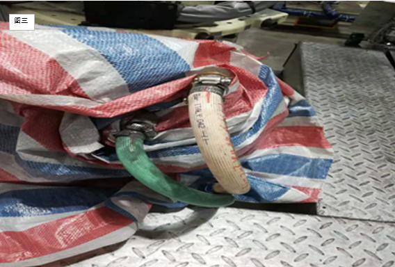 用準(zhǔn)備好的防水彩布把靠近焊槍進(jìn)出水管一側(cè)周邊圍蔽好,防水彩布擋在接頭等設(shè)備前面,在拆管和清洗時(shí)有水流出,水會(huì)從彩布上表面留下來,然后用水桶接水至桶內(nèi),防止清洗水路時(shí)水進(jìn)入接頭等電子設(shè)備,如圖三。