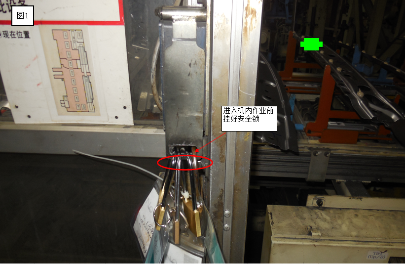 進(jìn)入機(jī)內(nèi)作業(yè)時(shí)掛好安全鎖,如圖一。